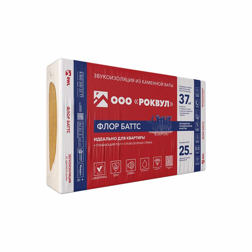 Жесткие гидрофобизированные теплоизоляционные плиты, изготовленные из каменной ваты на основе габбро-базальтовых пород. Плиты ФЛОР БАТТС предназначены для устройства акустических плавающих полов, а также для тепловой изоляции полов по грунту. Обладают динамическими характеристиками, отвечающими требованиям по защите от шума, и относятся к классу высокоэффективных звукоизоляционных прокладочных материалов.
